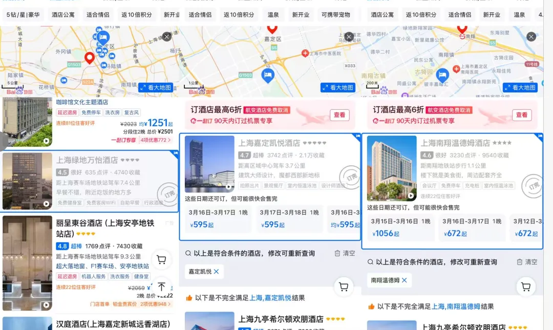 此外,赛场周边的住宿同样火热,3月13日至15日比赛期间,上海国际赛车场所在地嘉定区酒店价格出现一定程度的上浮,多家已处于"满房"状态,其中包括绿地万怡酒店、嘉定喜来登酒店、嘉定凯悦酒店、南翔温德姆酒店等。